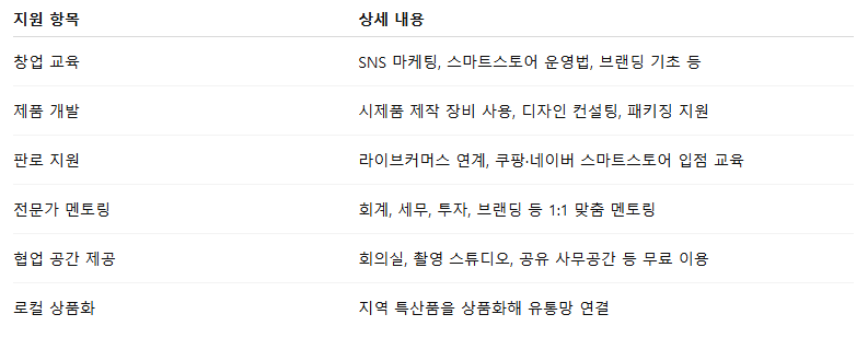 특히 예비창업자 및 로컬 소상공인 대상 프로그램은 대부분 무료로 제공되며, 일부는 정부 지원금과 연계된 사업화 자금도 받을 수 있습니다.